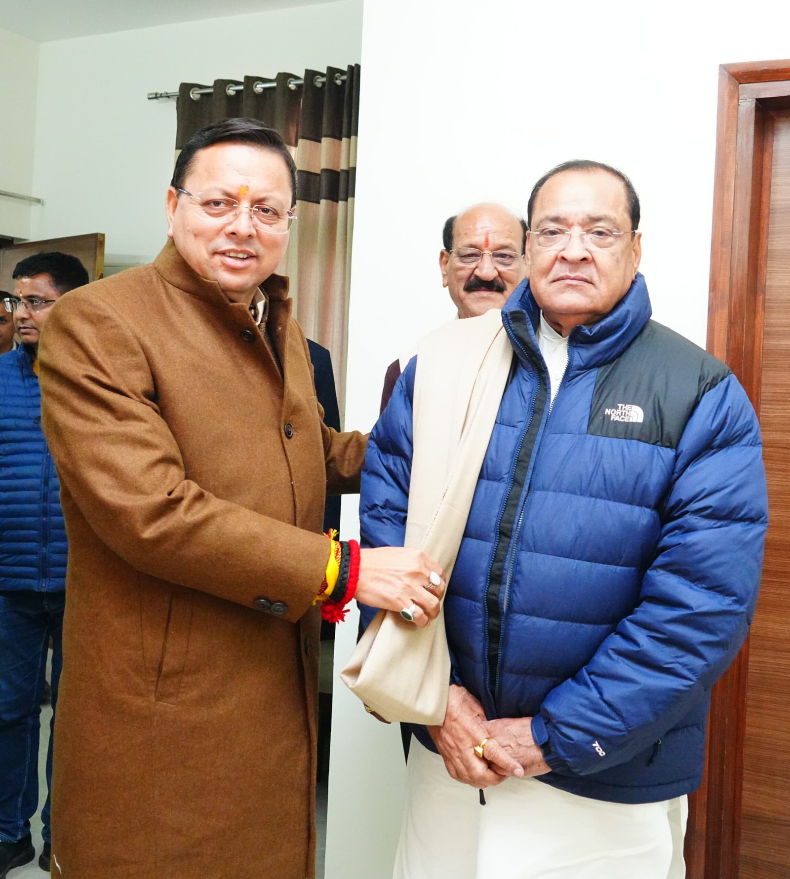 मुख्यमंत्री श्री पुष्कर सिंह धामी ने भराड़ीसैंण (गैरसैंण) में नेता प्रतिपक्ष श्री यशपाल आर्य से शिष्टाचार भेंट की