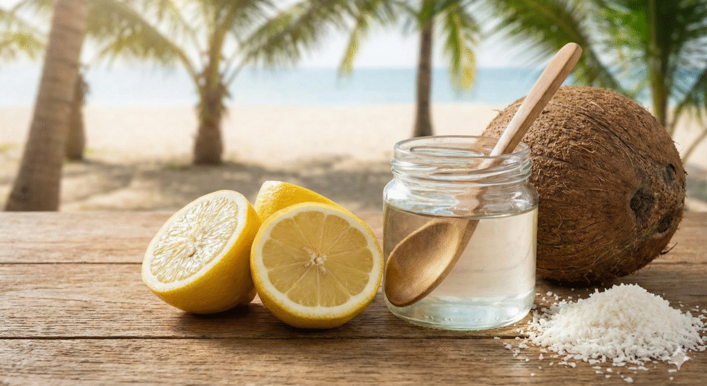 नींबू में एंटी-फंगल गुण होते हैं जो रूसी खत्म करने में मदद करते हैं, जबकि नारियल तेल स्कैल्प को मॉइस्चर देता है।