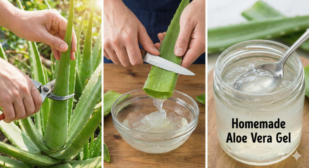 • ताज़ा एलोवेरा जेल स्कैल्प में लगाएं