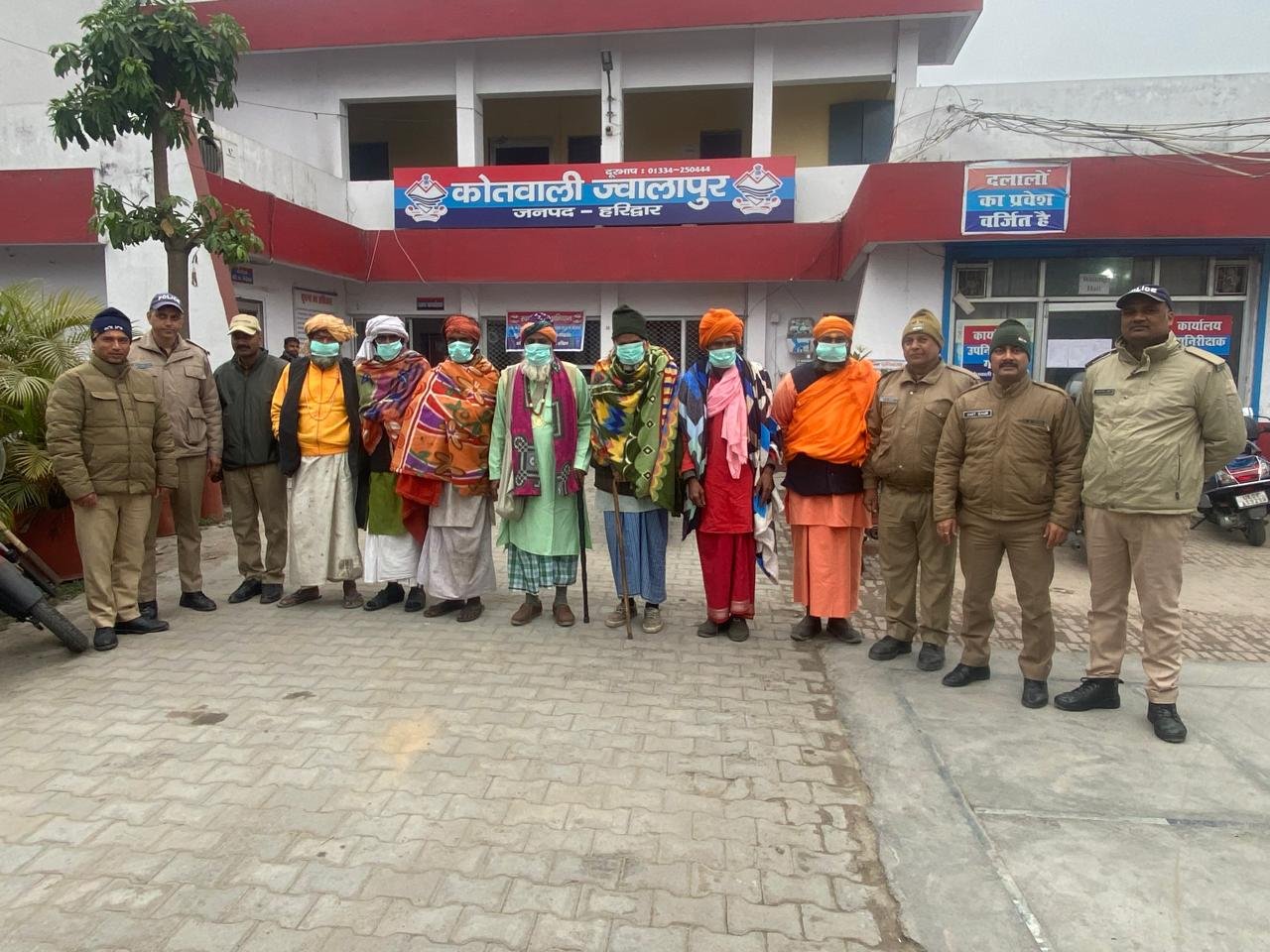 आदेश के अनुपालन में कोतवाली ज्वालापुर हरिद्वार पुलिस द्वारा दिनांक 20.12.2025 को थाना क्षेत्रान्तर्गत दौराने चैकिंग 07 बहरुपी बाबा जो बाबाओं के भेष मे तन्त्र-मन्त्र, जादू -टोना आदि की कलाओं को दिखाकर स्थानीय व्यक्ति एवं यात्रियो को अपनी ओर आकर्षित कर रहे थे। जिस कारण उक्त स्थान पर काफी भीड़-भाड़ होने के कारण इन बेहरुपी बाबाओं के उक्त कृत्य से स्थानीय लोगो एवं यात्रियो के भड़काने/उग्र होने की सम्भावना के दृष्टिगत थाना कोतवाली ज्वालापुर हरिद्वार की पुलिस टीम द्वारा कोतवाली ज्वालापुर क्षेत्र से 07 बेहरुपी बाबाओं को अन्तर्गत धारा 172(2) बी0एन0एस0एस के अन्तर्गत गिरफ्तार किया गया।