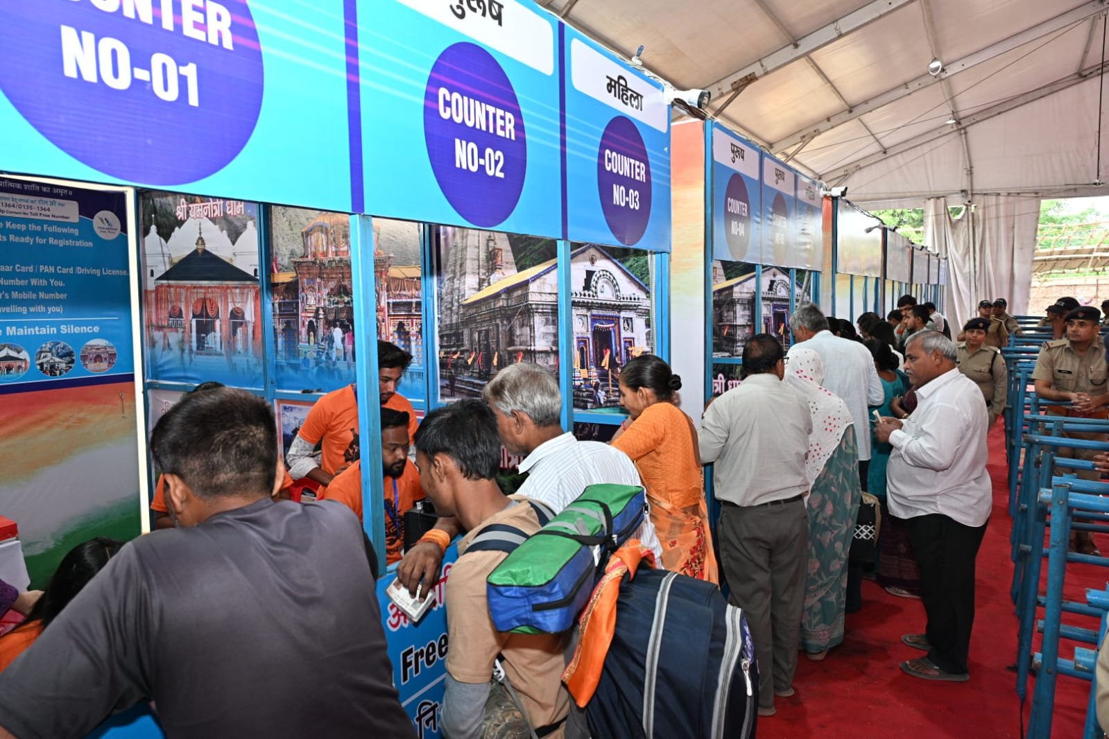 *पर्यटन विभाग* चारधाम यात्रा पर आने वाले श्रद्धालुओं के पंजीकरण हेतु ऋषिकुल मैदान में यात्री ऑफलाइन पंजीकरण केंद्र तैयार किया गया है जिसमें यात्री पंजीकरण के लिए 20 काउंटर बनाए गए है,जिसमें 24X7 कार्य करेंगे,जिसमें तीन शिफ्टों में कार्मिकों की तैनाती की गई है।यदि कैसी यात्री का आधार कार्ड से पंजीकरण नहीं हो पता है तो उसके लिए दो थंभ एवं फेस स्क्रीनिंग काउंटर अलग से बनाए गए है इसके साथ ही 15 मोबाइल टीम बनाई गई है,जो धर्मशालाओं एवं आश्रमों में रुके यात्रियों का चार धाम हेतु पंजीकरण करेंगे।