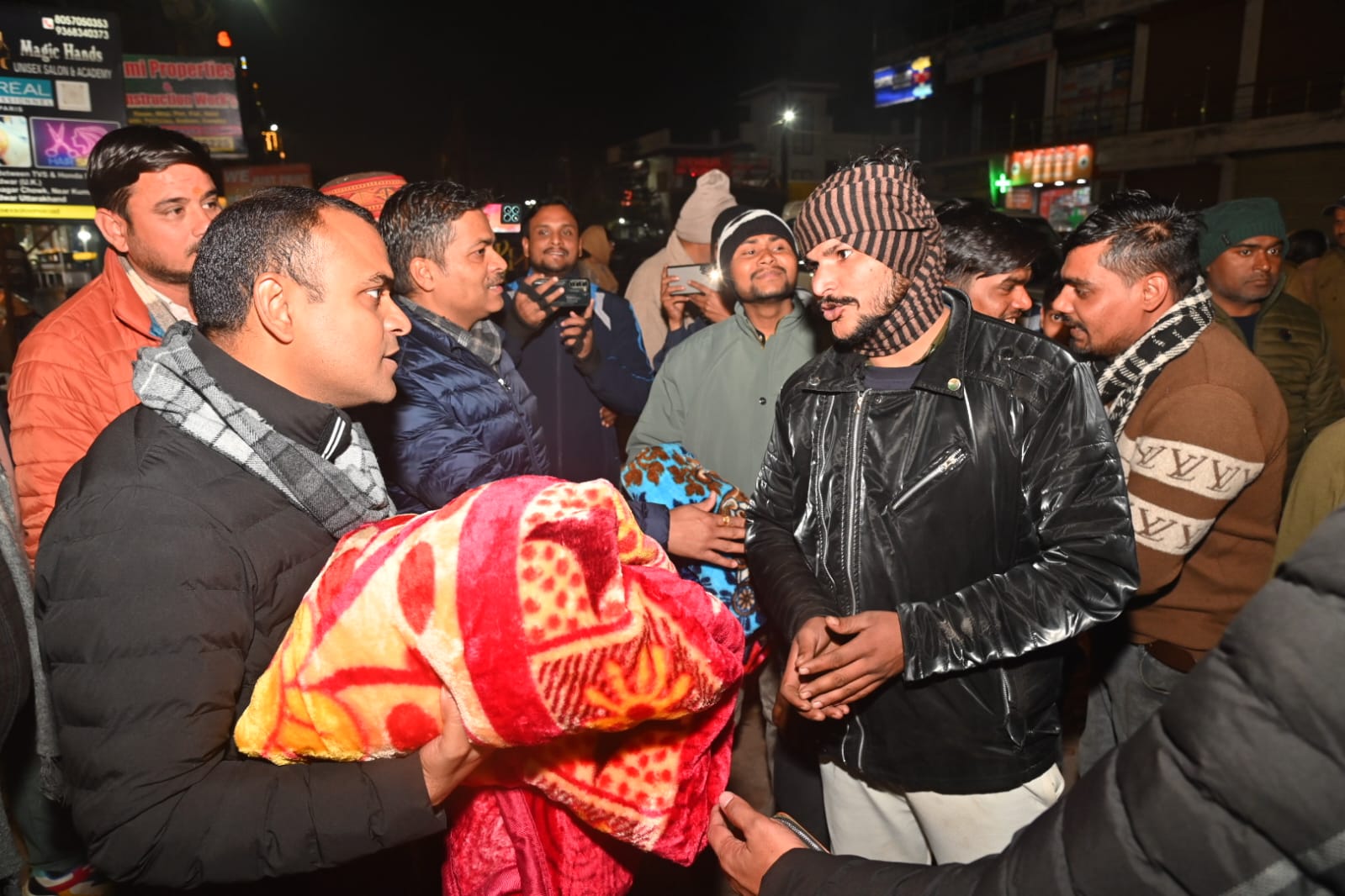 *हरिद्वार ।   जनपद में बढ़ती शीत लहर के दृष्टिगत गरीब एवं असहाय व्यक्तियों को शीत लहर के प्रकोप से बचाने के लिए जिलाधिकारी स्वयं धरातल पर पहुंचकर संचालित हो रहे रेन बसेरों एवं विभिन्न स्थानों पर जलाये जा रहे अलाव का खुद जायजा ले रहे है तथा इसके साथ ही गरीब व्यक्तियों को स्वयं कंबल वितरित कर रहे है। जिलाधिकारी मयूर दीक्षित एवं शिवालिक नगर पालिका अध्यक्ष राजीव शर्मा द्वारा आज शिवालिक नगर क्षेत्रांतर्गत शिव मंदिर,शिवालिक नगर चौक,सीआईएसएफ के पास,टिहरी विस्थापित कॉलोनी,हनुमान मंदिर सेक्टर 4 ,सहित आदि क्षेत्रों में पहुंच कर गरीब निराश्रित व्यक्तियों को कंबल वितरित किए गए साथ ही क्षेत्र में जलाये जा रहे अलाव का भी लिया जायजा।