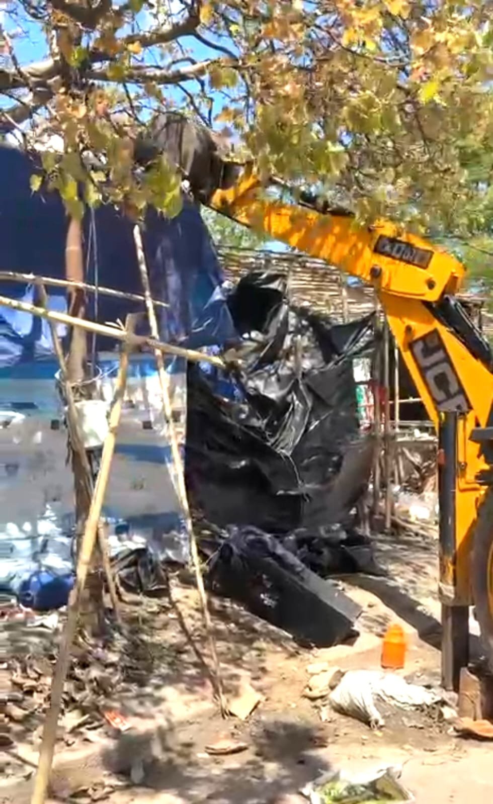 पंतद्वीप घाट एवं आसपास के क्षेत्रों में अतिक्रमण के विरुद्ध कार्यवाही करते हुए लगभग 100 से अधिक झोपड़ियों/खोखो को किया गया ध्वस्त